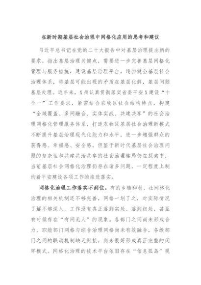 / 【七哥公文】2024年:在新时期基层社会治理中网格化应用的思考和建议+更多免费公文+VX:QiGeGongWen2024