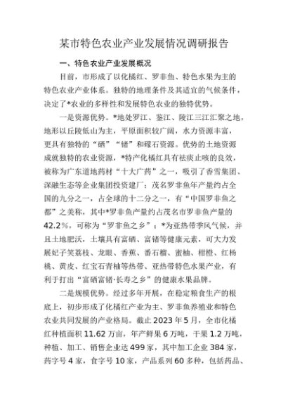 / 【七哥公文】2024年:市特色农业产业发展情况调研报告+更多免费公文+VX:QiGeGongWen2024
