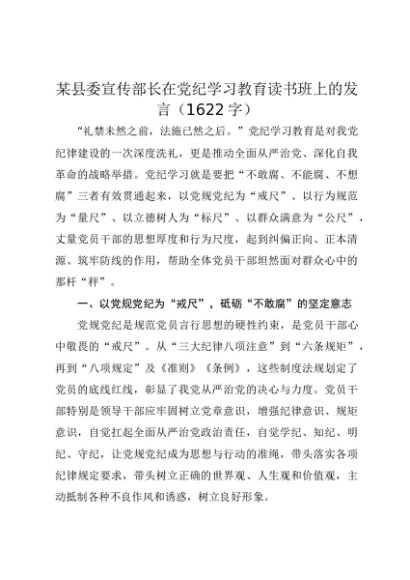 【七哥公文】2024年:某县委宣传部长在党纪学习教育读书班上的发言1622字+更多免费公文+VX:QiGeGongWen2024