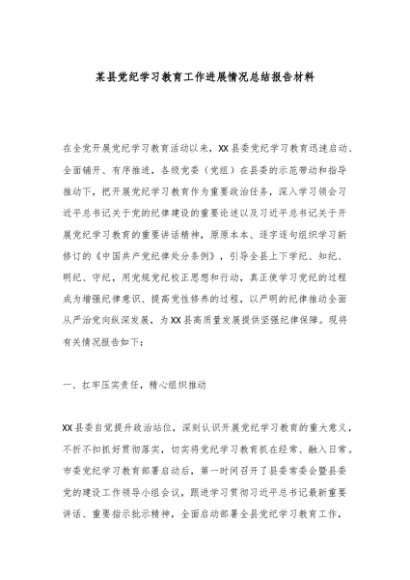 / 【七哥公文】2024年:某县党纪学习教育工作进展情况总结报告材料+更多免费公文+VX:QiGeGongWen2024