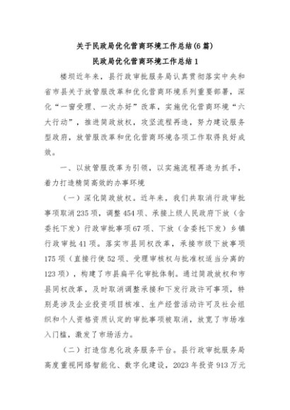 / 【七哥公文】2024年:(6篇)关于民政局优化营商环境工作总结+更多免费公文+VX:QiGeGongWen2024