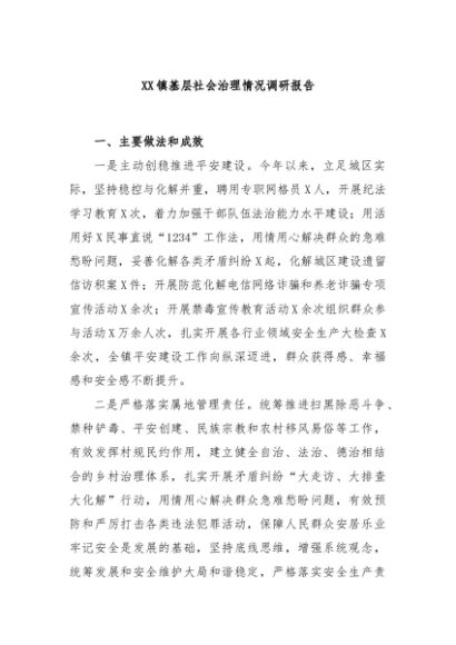 / 【七哥公文】2024年:XX镇基层社会治理情况调研报告+更多免费公文+VX:QiGeGongWen2024