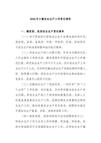 / 【七哥公文】2024年:2024年X镇安全生产工作责任清单+更多免费公文+VX:QiGeGongWen2024