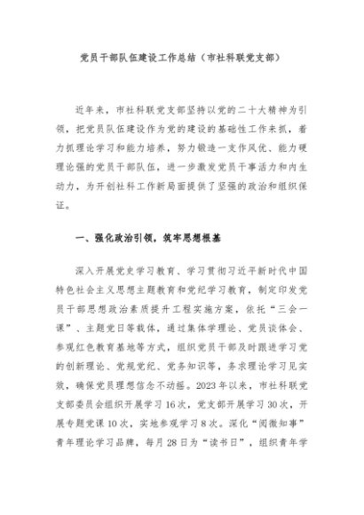 / 【七哥公文】2024年:党员干部队伍建设工作总结(市社科联党支部)+更多免费公文+VX:QiGeGongWen2024