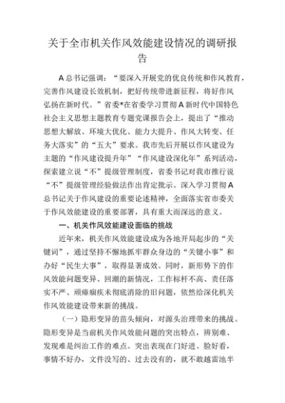 / 【七哥公文】2024年:全市机关作风效能建设情况的调研报告+更多免费公文+VX:QiGeGongWen2024