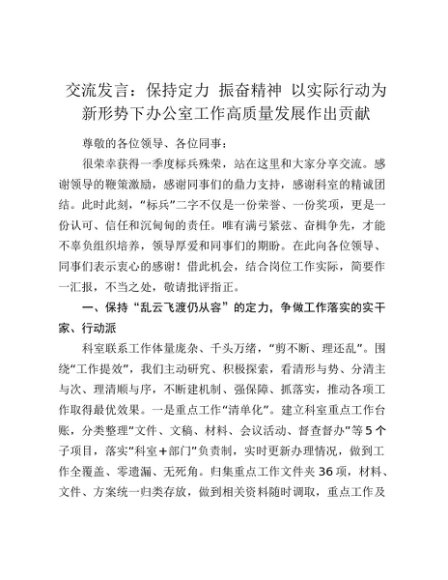 【七哥公文】2024年:交流发言:保持定力振奋精神以实际行动为新形势下办公室工作高质量发展作出贡献+更多免费公文+VX:QiGeGongWen2024