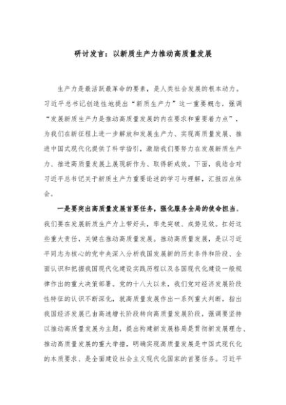 / 【七哥公文】2024年:研讨发言:以新质生产力推动高质量发展+更多免费公文+VX:QiGeGongWen2024