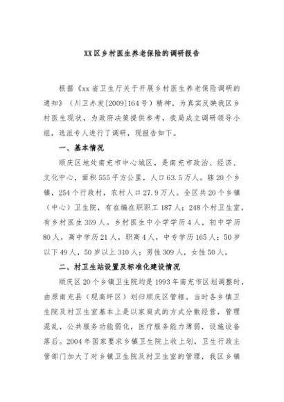 / 【七哥公文】2024年:XX区乡村医生养老保险的调研报告+更多免费公文+VX:QiGeGongWen2024