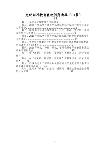 / 【七哥公文】2024年:10篇党纪学习教育整改问题清单+更多免费公文+VX:QiGeGongWen2024