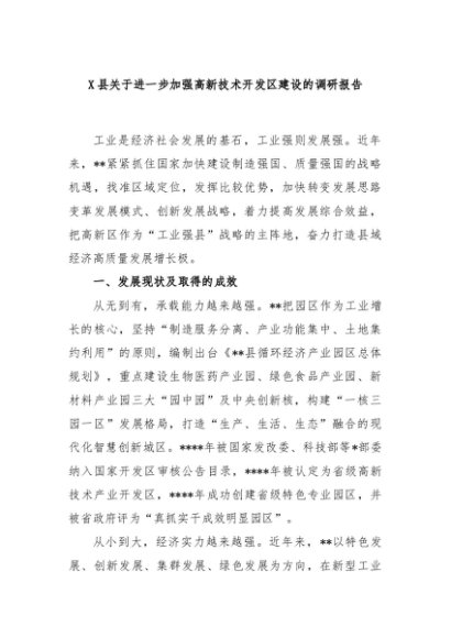 / 【七哥公文】2024年:X县关于进一步加强高新技术开发区建设的调研报告+更多免费公文+VX:QiGeGongWen2024