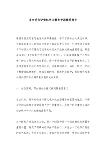 / 【七哥公文】2024年:某市委书记党纪学习教育专题辅导报告+更多免费公文+VX:QiGeGongWen2024