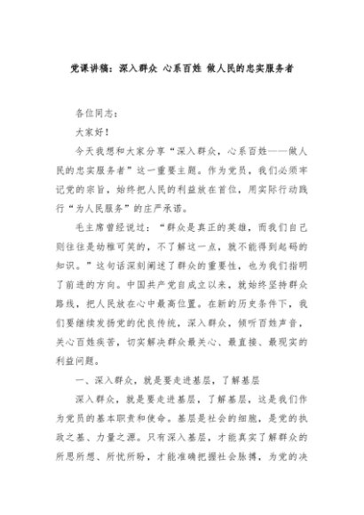 / 【七哥公文】2024年:党课讲稿:深入群众 心系百姓 做人民的忠实服务者+更多免费公文+VX:QiGeGongWen2024