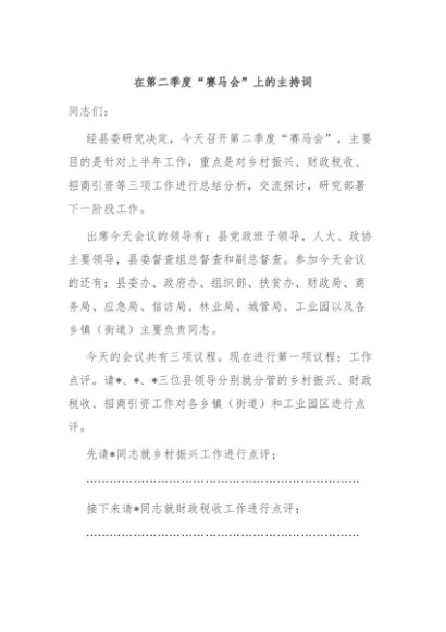 / 【七哥公文】2024年:在第二季度“赛马会”上的主持词+更多免费公文+VX:QiGeGongWen2024