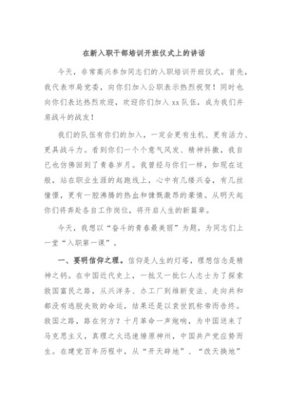 / 【七哥公文】2024年:在新入职干部培训开班仪式上的讲话+更多免费公文+VX:QiGeGongWen2024