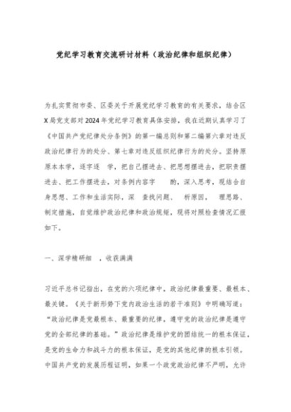 / 【七哥公文】2024年:党纪学习教育交流研讨材料政治纪律和组织纪律+更多免费公文+VX:QiGeGongWen2024