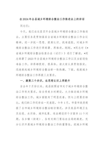 【七哥公文】2024年:在2024年全县城乡环境综合整治工作推进会上的讲话+更多免费公文+VX:QiGeGongWen2024