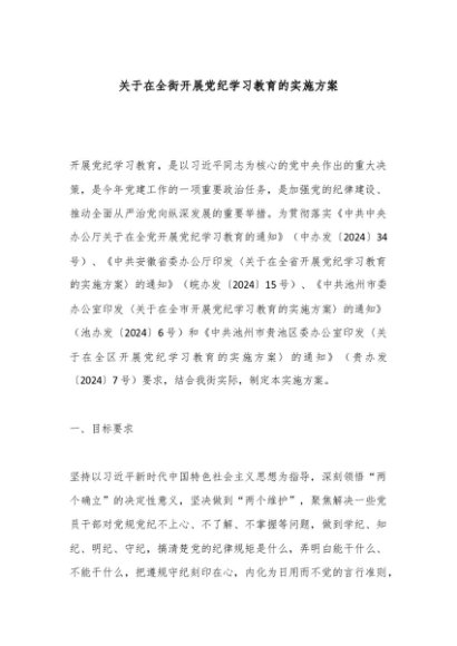 / 【七哥公文】2024年:关于在全街开展党纪学习教育的实施方案+更多免费公文+VX:QiGeGongWen2024
