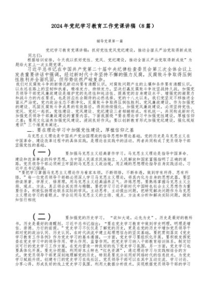/ 【七哥公文】2024年:8篇2024年党纪学习教育工作党课讲稿+更多免费公文+VX:QiGeGongWen2024