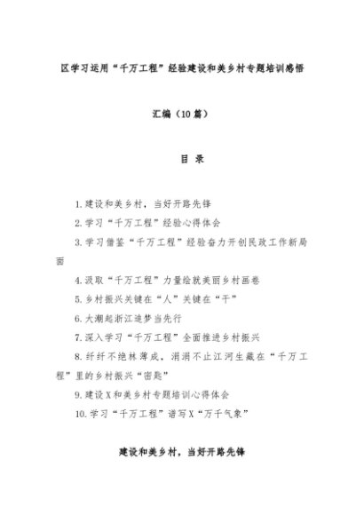 【七哥公文】2024年:(10篇)区学习运用“千万工程”经验建设和美乡村专题培训感悟汇编+更多免费公文+VX:QiGeGongWen2024