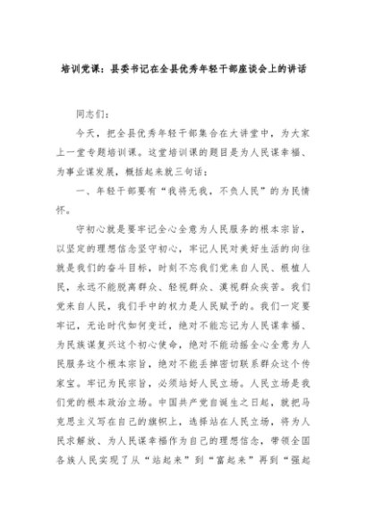 【七哥公文】2024年:培训党课:县委书记在全县优秀年轻干部座谈会上的讲话+更多免费公文+VX:QiGeGongWen2024