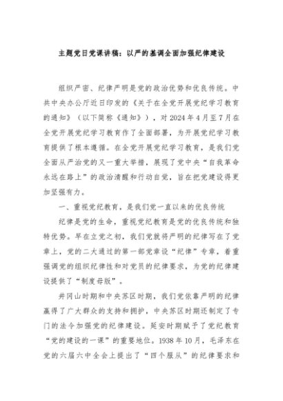 / 【七哥公文】2024年:主题党日党课讲稿:以严的基调全面加强纪律建设+更多免费公文+VX:QiGeGongWen2024