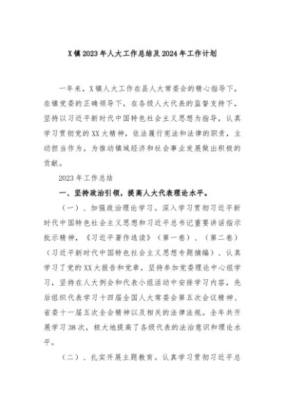 / 【七哥公文】2024年:X镇2023年人大工作总结及2024年工作计划+更多免费公文+VX:QiGeGongWen2024