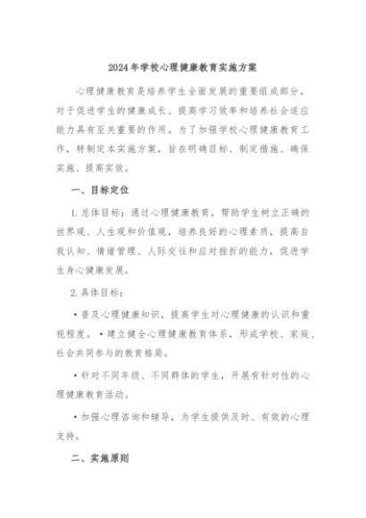 / 【七哥公文】2024年:2024年学校心理健康教育实施方案+更多免费公文+VX:QiGeGongWen2024