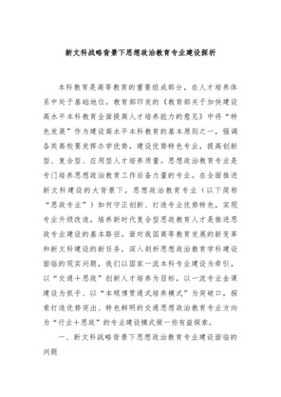 【七哥公文】2024年:新文科战略背景下思想政治教育专业建设探析+更多免费公文+VX:QiGeGongWen2024