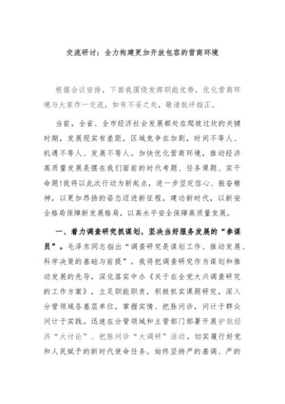 / 【七哥公文】2024年:交流研讨:全力构建更加开放包容的营商环境+更多免费公文+VX:QiGeGongWen2024