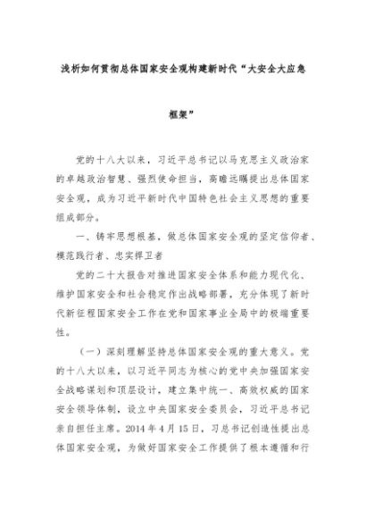 【七哥公文】2024年:浅析如何贯彻总体国家安全观构建新时代“大安全大应急框架”+更多免费公文+VX:QiGeGongWen2024