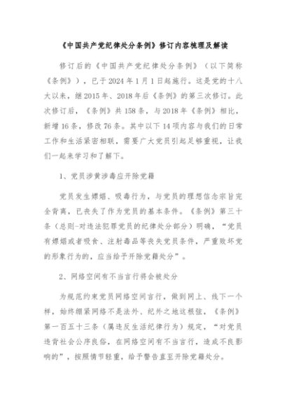 【七哥公文】2024年:新修订内容梳理及解读党课+更多免费公文+VX:QiGeGongWen2024