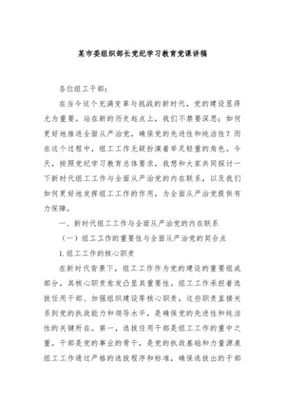 / 【七哥公文】2024年:某市委组织部长党纪学习教育党课讲稿+更多免费公文+VX:QiGeGongWen2024