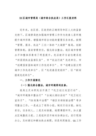 / 【七哥公文】2024年:XX区城市管理局(城市综合执法局)工作汇报材料+更多免费公文+VX:QiGeGongWen2024