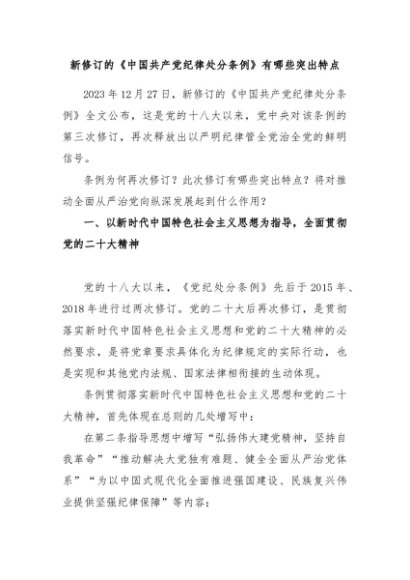 / 【七哥公文】2024年:新修订的纪律处分条例有哪些突出点+更多免费公文+VX:QiGeGongWen2024