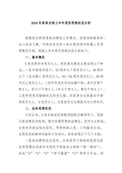 / 【七哥公文】2024年:2024年某局支部上半年党员思想状况分析+更多免费公文+VX:QiGeGongWen2024