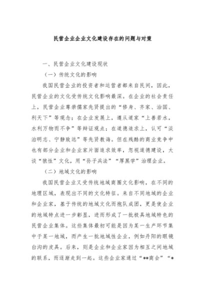 / 【七哥公文】2024年:民营企业企业文化建设存在的问题与对策+更多免费公文+VX:QiGeGongWen2024