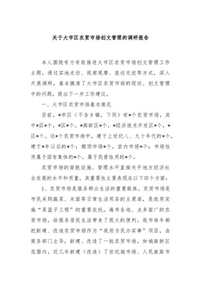 【七哥公文】2024年:关于大市区农贸市场创文管理的调研报告+更多免费公文+VX:QiGeGongWen2024