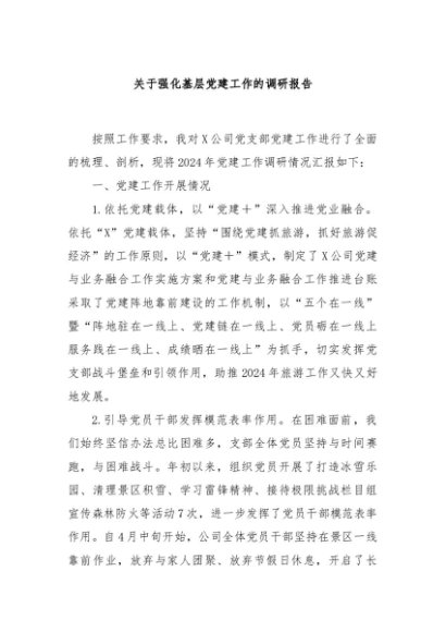 / 【七哥公文】2024年:关于强化基层党建工作的调研报告+更多免费公文+VX:QiGeGongWen2024