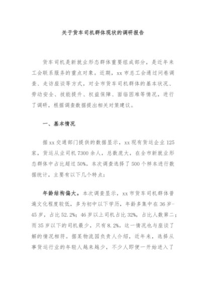 【七哥公文】2024年:关于货车司机群体现状的调研报告+更多免费公文+VX:QiGeGongWen2024