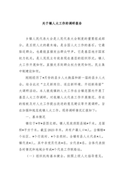 / 【七哥公文】2024年:关于镇人大工作的调研报告+更多免费公文+VX:QiGeGongWen2024
