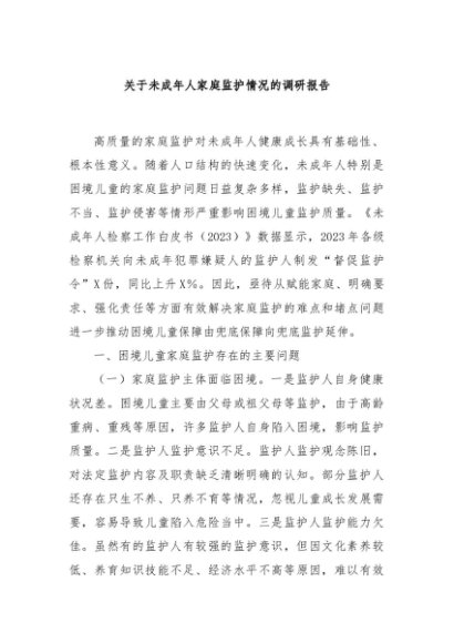 / 【七哥公文】2024年:关于未成年人家庭监护情况的调研报告+更多免费公文+VX:QiGeGongWen2024