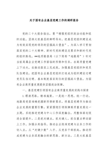 / 【七哥公文】2024年:关于国有企业基层党建工作的调研报告+更多免费公文+VX:QiGeGongWen2024