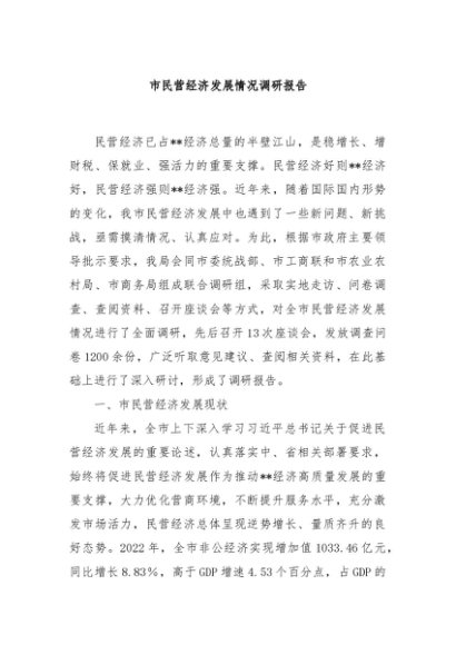 / 【七哥公文】2024年:市民营经济发展情况调研报告+更多免费公文+VX:QiGeGongWen2024