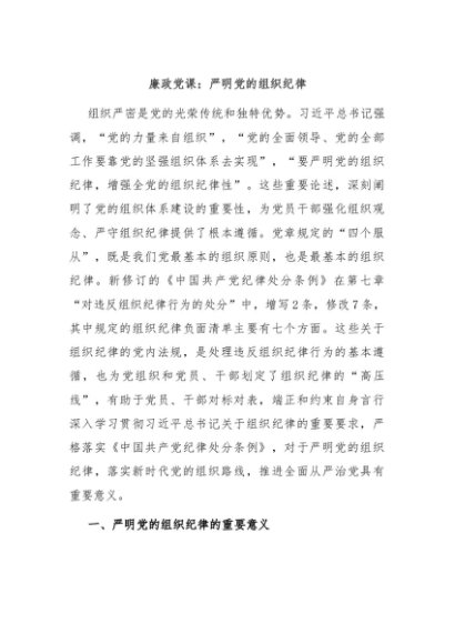 / 【七哥公文】2024年:廉政党课:严明党的组织纪律+更多免费公文+VX:QiGeGongWen2024