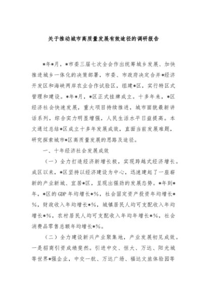 / 【七哥公文】2024年:关于推动城市高质量发展有效途径的调研报告+更多免费公文+VX:QiGeGongWen2024