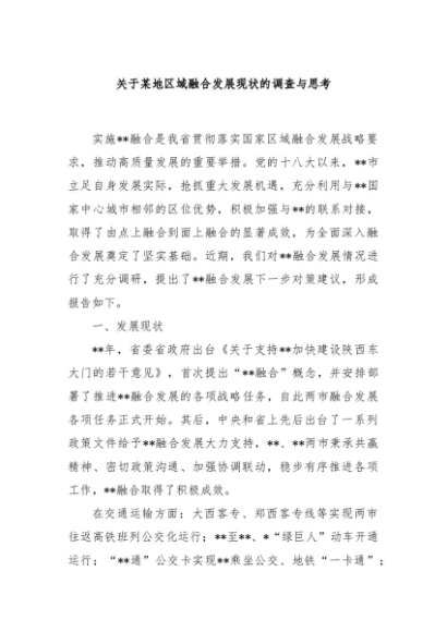 【七哥公文】2024年:关于某地区域融合发展现状的调查与思考+更多免费公文+VX:QiGeGongWen2024
