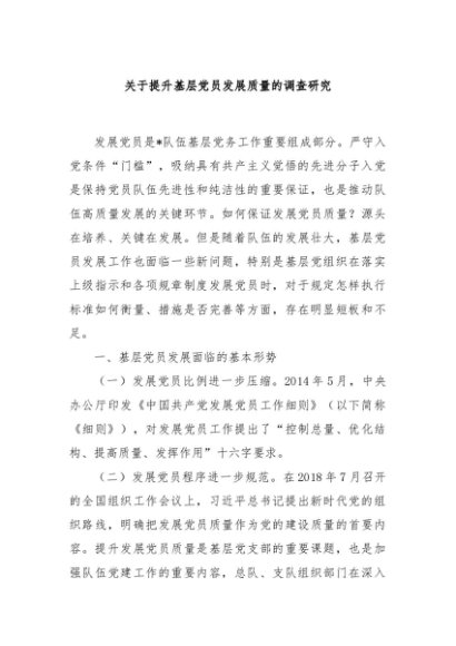 【七哥公文】2024年:关于提升基层党员发展质量的调查研究+更多免费公文+VX:QiGeGongWen2024