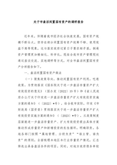 / 【七哥公文】2024年:关于市盘活闲置国有资产的调研报告+更多免费公文+VX:QiGeGongWen2024