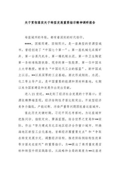 / 【七哥公文】2024年:关于贯彻落实关于转型发展重要指示精神调研报告+更多免费公文+VX:QiGeGongWen2024