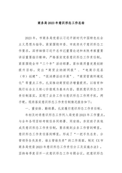 / 【七哥公文】2024年:商务局2023年意识形态工作总结+更多免费公文+VX:QiGeGongWen2024